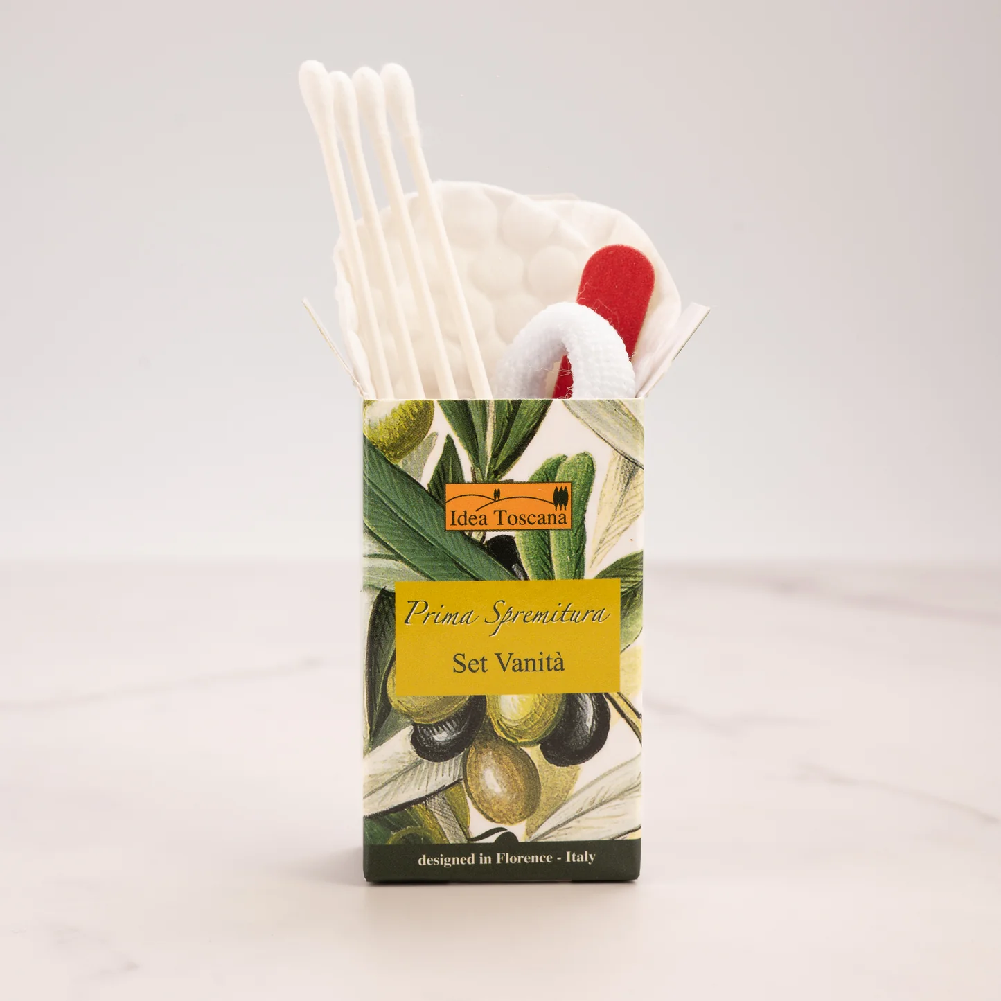 True hospitality is reflected in the details – Idea Toscana’s hotel accessories enhance the guest experience with natural elegance and thoughtful presentation. Offered in refined olive branch-patterned packaging, the products are available individually or as curated sets, making them ideal for any hotel room or wellness space.