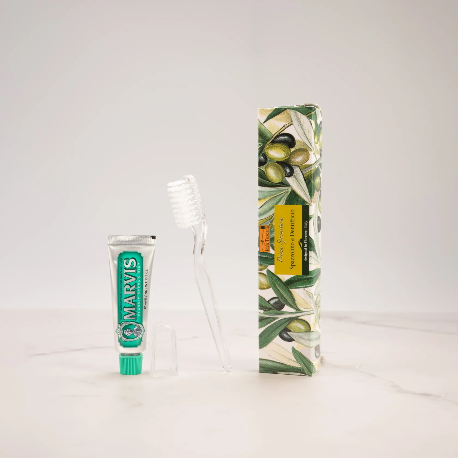 - Toothbrush + 10 ml Marvis toothpaste set