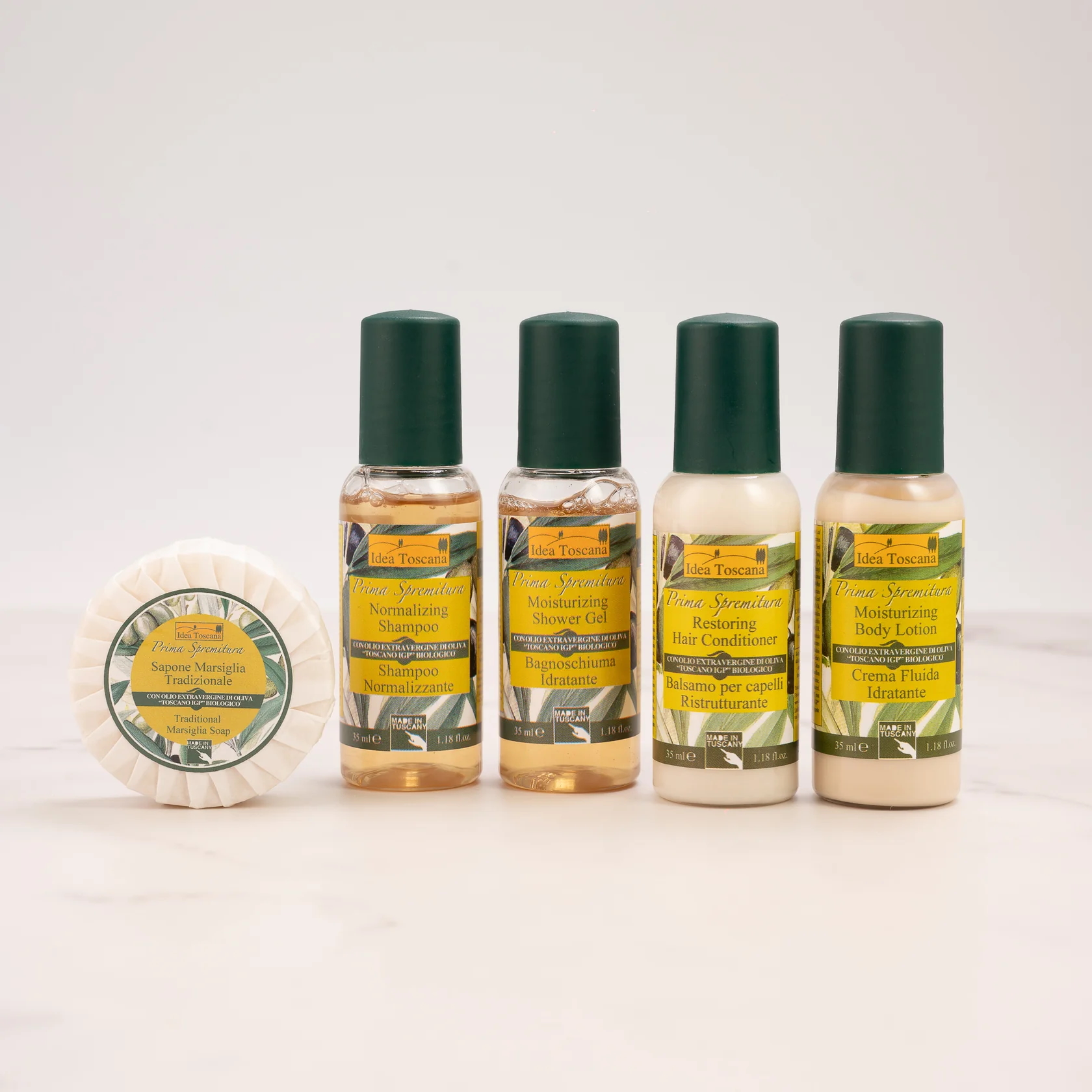 Crafted in the heart of Tuscany, the 35 ml hotel-size natural cosmetics by Idea Toscana elevate the standard of in-room amenities. Formulated with certified organic Tuscan extra virgin olive oil and selected plant-based ingredients, these products offer a perfect balance of gentle care and aromatic pleasure — making every stay memorable.