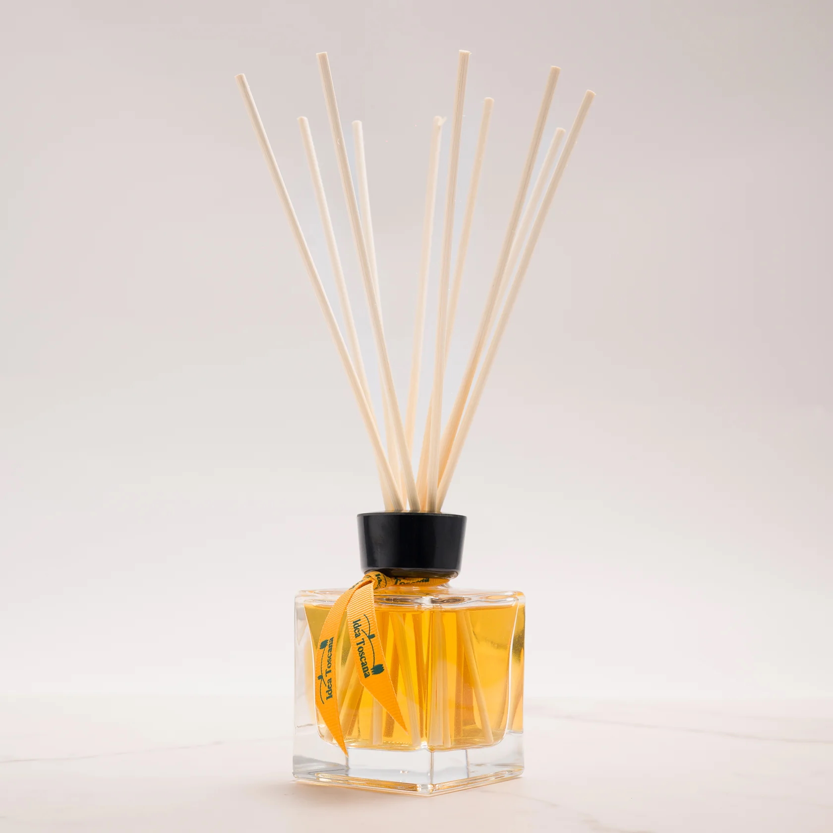 The Idea Toscana Olive Room Diffuser brings the atmosphere of the Tuscan countryside into your home with a harmonious blend of 100% natural essential oils. Its unique scent composition is based on balsamic olive tones, enriched with the vibrant freshness of rosemary and mint, deepened by the aromatic notes of thyme and lavandin, and warmed by the comforting presence of cinnamon.